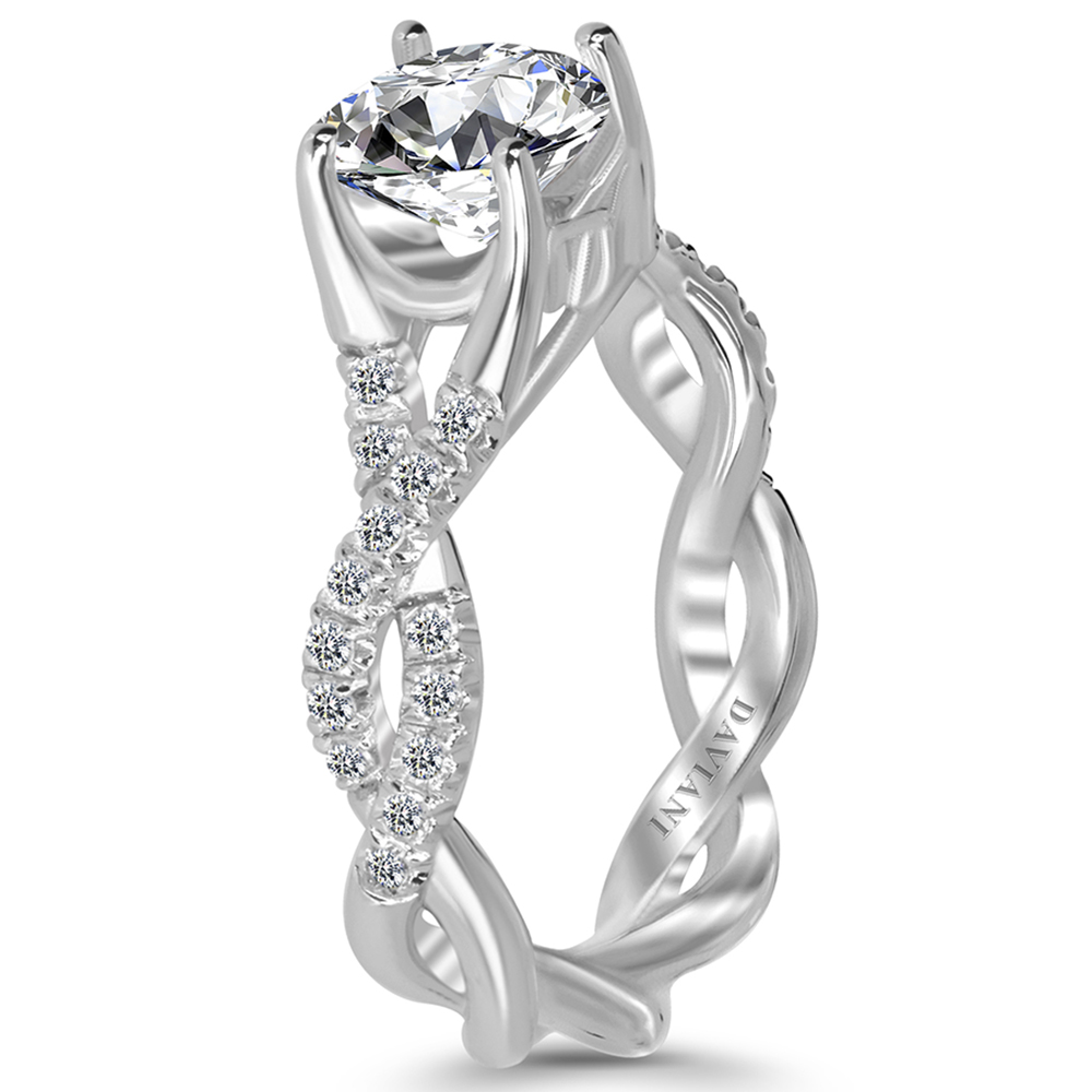 This Daviani diamond engagement ring, is made with 18Kt White Gold. The diamonds total carat weight is 0.31ct. This ring has a matching band. Also available in 19Kt or Platinum.